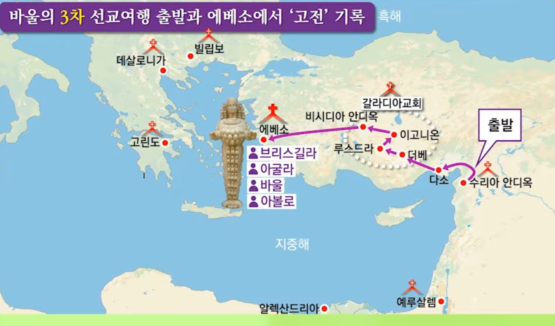 사도행전 19:23~41 — 에베소에서 일어난 큰 소동 바울은 지금 3차 선교여행중 에베소에 머물며 복음을 전하고 있습니다. 바울의 3차 전도여행 중, 에베소에서 복음이 얼마나 큰 영향력을 미쳤는지를 보여주는 중요한 사건입니다. 복음이 퍼지면서 우상 숭배 산업이 흔들리자, 은장색 데메드리오가 문제를 제기합니다. 그들은 아르테미스 신상을 만들어 팔아 큰 이익을 얻고 있었는데, 바울이 “사람의 손으로 만든 것은 신이 아니다”고 가르치자 경제적 타격을 우려하게 됩니다. 결국 데메드리오는 동업자들을 선동하며 도시 전체에 큰 소동을 일으킵니다. 사람들은 흥분하여 “에베소 사람의 아르테미스여!”를 외치며 극장에 몰려들고, 바울의 동역자 가이오와 아리스달고가 끌려갑니다. 바울은 들어가서 변론하고 싶어 하지만 제자들과 아시아 관리들이 말립니다. 마침내 에베소의 서기장이 나서 상황을 진정시킵니다. 그의 중재로 소동은 끝나지만, 바울이 전한복음이 당시 사회와 경제 구조까지 흔들 만큼 강력했다는 사실을 보여줍니다. *사진자료: 1)3차 선교여행중 고린도전서 기록 2) 폭동이 일어난 에베소원형극장 3-5)아데미 여신, 신전터, 모형도 ![]() ![]() ![]() ![]() ![]() |